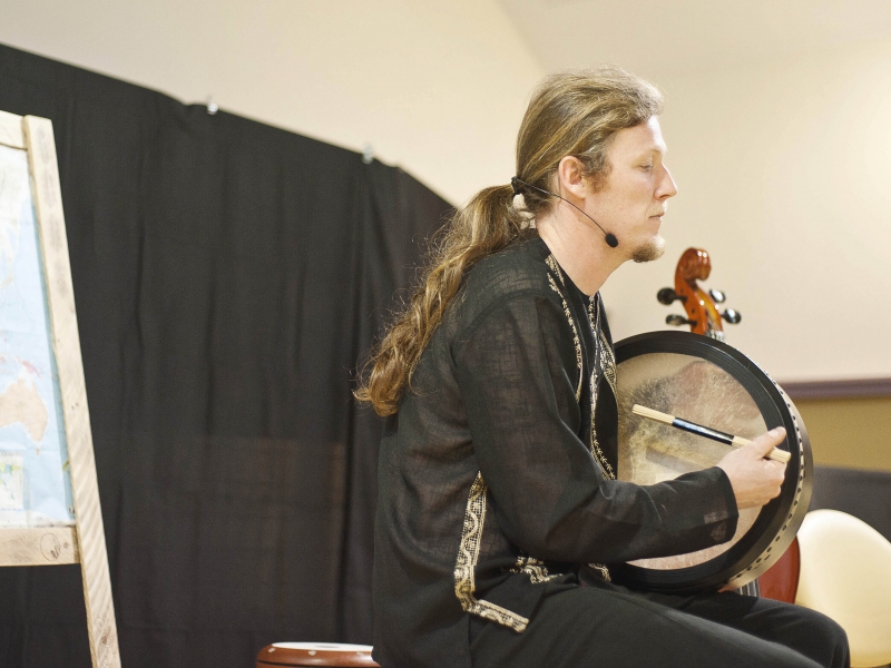 Percussionniste passionné de sons en tous genres, Anthony Debray joue une quinzaine d’instruments du monde. Il profite de son master de Politiques Culturelles pour étudier les mythes et légendes celtiques puis prend le chemin de traverse du conteur musicien.