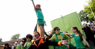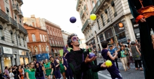 Au sol, en échasses pneumatiques, en acrobatie, en musique ou en jonglerie, les Déjantés entraînent toujours le public dans leur sillage avec une joie et une énergie contagieuse.