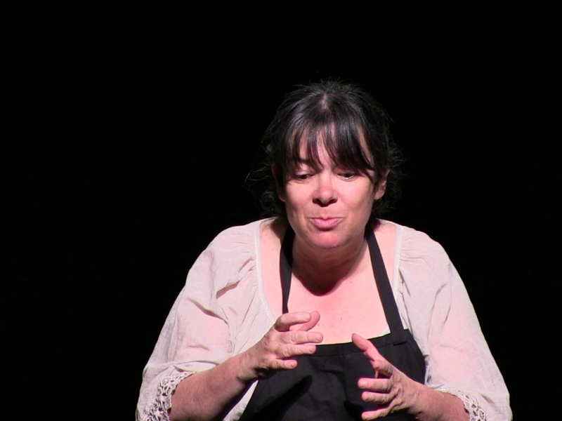 Seule en scène, soutenue par des vidéos et de la musique "d'époque" elle sait faire vivre avec dynamisme et tendresse une infirmière ou une colonelle, une paysanne ou une mondaine, une ouvrière ou une marraine de guerre.