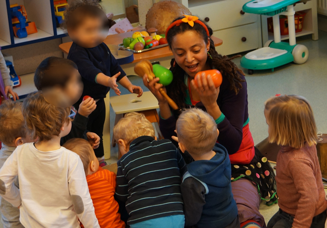 Promenade chantée-dansée aux quatre coins de la crèche à la découverte des sons à partir de 6 mois.
