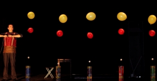Un tabouret magique se déplace (presque) tout seul, les balles disparaissent parfois avant de rebondir réapparaitre, là précisément où on ne les attendait pas. Un Tancarville se rebelle avant de devenir un grand oiseau désarticulé. Des boites de chips dont le contenu est imprévu...
