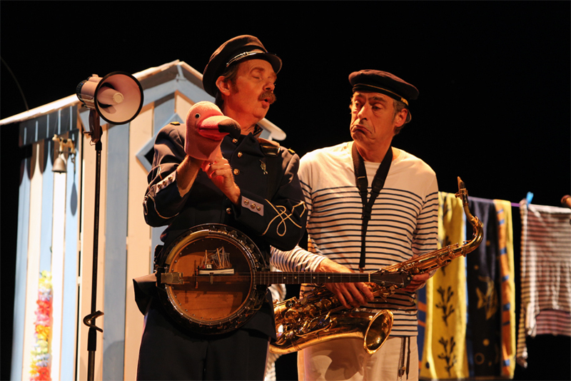 Vieux tubes et eaux salées est une plongée théâtrale dans les eaux joyeuses de la chanson de variété où se baigne une mémoire populaire sifflant à nos oreilles des refrains immarcescibles.