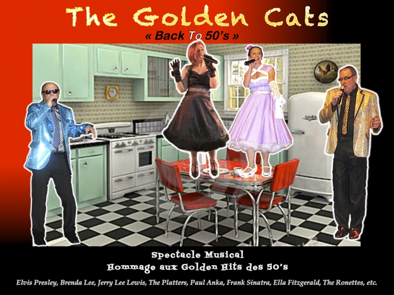 The Golden Cats vous feront voyager au temps où jeunes filles aux queues-de-cheval et jeunes garçons aux blousons noirs se rendaient au Drive-in dans leur Cadillac. Du temps où les Teenagers allaient dans des Milk-Bars au son des Juke-Box jouant leurs titres favoris.