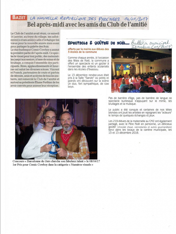 Vous résidez dans le Sud-ouest et vous recherchez un spectacle d'humour original ? Notre duo clownesque sur le thème des cowboys s'y prête à merveille !. Le spectacle enfant qui plait aussi aux grands !