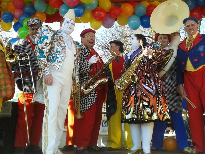 Les clowns et augustes qui composent cette compagnie perpétuent une musique joyeuse et cuivrée. Leur répertoire est très varié et inépuisable!