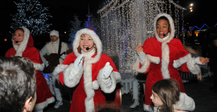 Chorale de Noël en déambulation Emmitouflées dans leurs petits manteaux blancs, apprêtées de leurs somptueuses robes rouges, chaussées de leurs petits souliers blancs fourrés et parées de leurs brillants, les Christmas... Par Les Mademoiselles