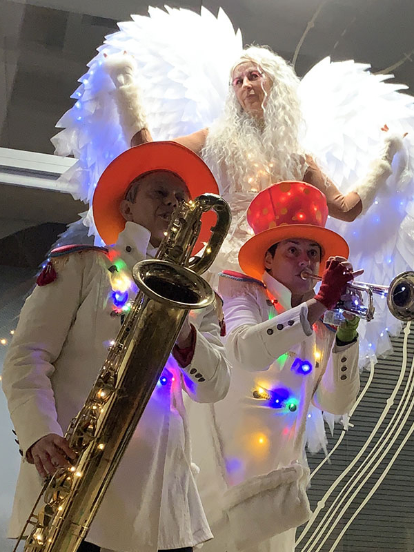 Jingle Drums Percussions hivernales et rythmes tintinnabulants, un spectacle de rue inédit pour la saison de Noël, aux effets lumineux inédits et surprenants :Jingle DrumsSpectacle sons percussifs et... Par Cie Poum tchaC