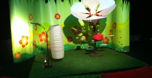 Il s’agit de théâtre d’objet où sont manipulées, autour d’une fleur géante mécanisée, des marionnettes de papier.