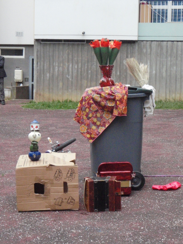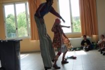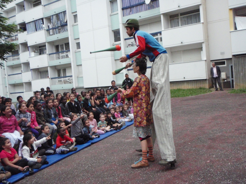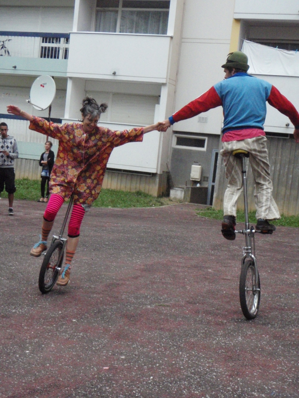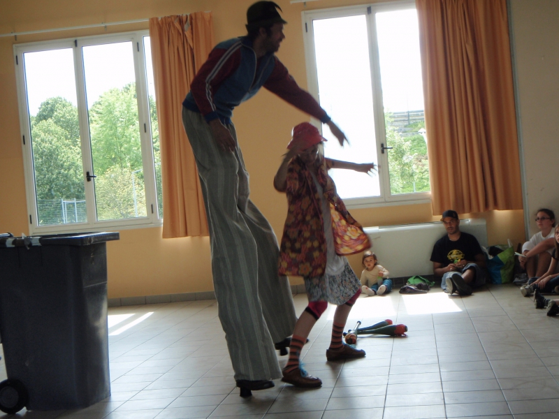 Spectacle jeune public : c'est un spectacle qui parle de la rencontre avec l'Autre,l'étranger,le différent,de rêve et de récupération d'objets qui deviennent supports à tous les délires.Un spectacle clownesque avec du jonglage,du monocycle et des échasses.Les deux personnages se découvrent et jouent à cache-cache pour enfin se réunir en apothéose.