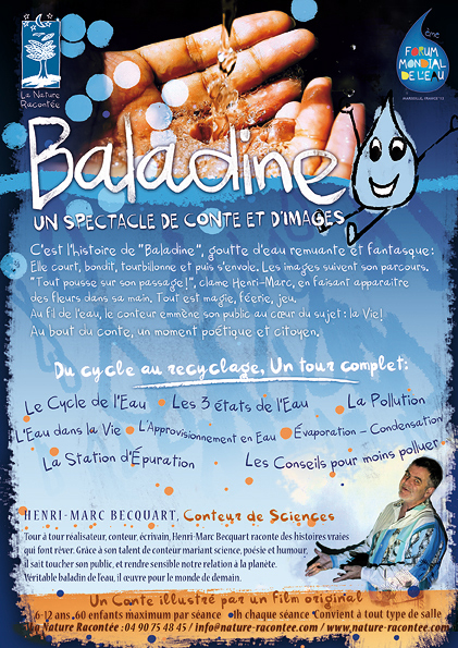 Destiné aux enfants de 6 à 12 ans, "Baladine" permet de créer un temps fort de sensibilisation et d'émerveillement à l'occasion de toute manifestation consacrée à l'eau à l'environenment et au développement durable.