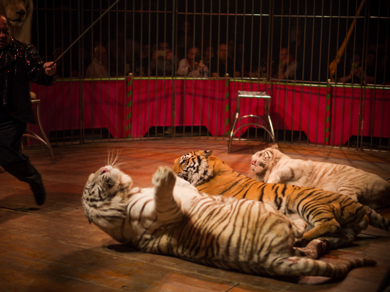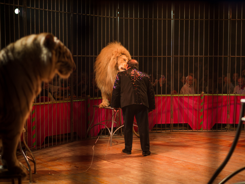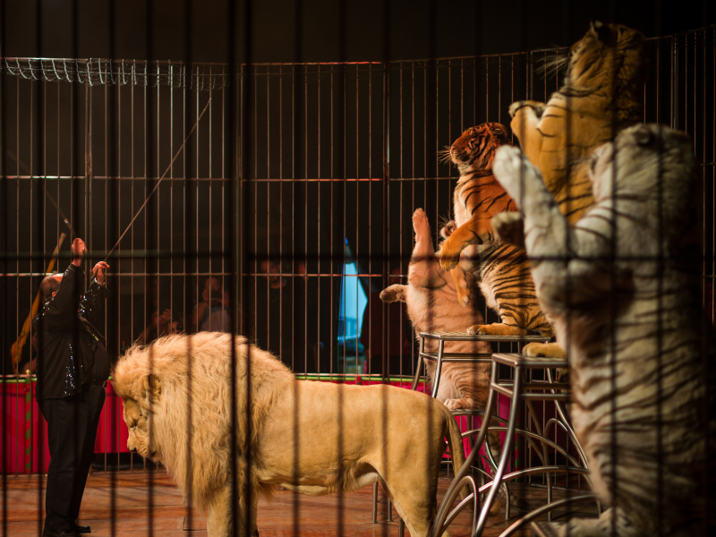 La compagnie de "Cinéma Evénement Animalier" vous propose un spectacle de félins. C'est un spectacle animalier très visuel qui dégage de la performance et de la complicité. C'est un spectacle qui peut être réalisé en intérieur comme en plein air. Nous vous proposons un groupe mixte de félins composé d'un lion blanc et de tigres. Ce numéro est tout public, il convient à la fois aux adultes comme aux enfants.