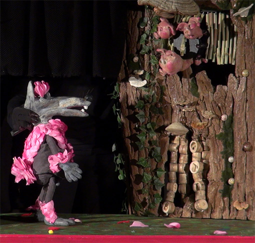 Nous avons conçu cette création dans la totalité du processus : de la conception - fabrication d'un petit théâtre monté sur quatre roues servant de castelet jusqu’à la création (sculpture et moulage) des marionnettes.