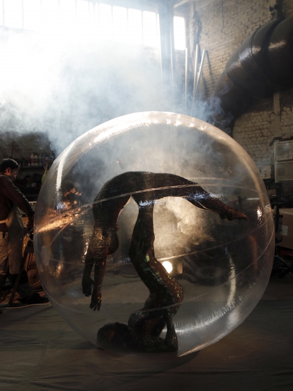 Il est indispensable d'avoir un espace avec un sol propre et à l'abri du regard du public pour nettoyer et ranger la bulle après la performance.
