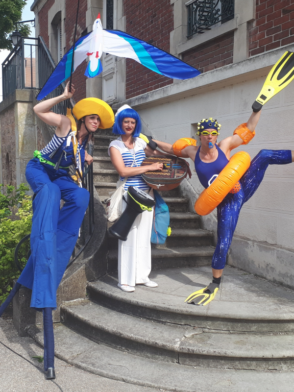 Les artistes réalisent un repérage des lieux avant de déambuler. L'équipe arrive 4h avant la prestation (repérage, déchargement, installation loge,, échauffement, préparation)