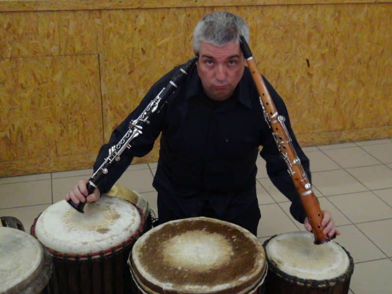 Deux musiciens : « Grand Chaman (percussions, chant) et « Maître des vents » (percussions, clavier, clarinette, Taragotte, chant…) jouent avec les sons comme des polissons.