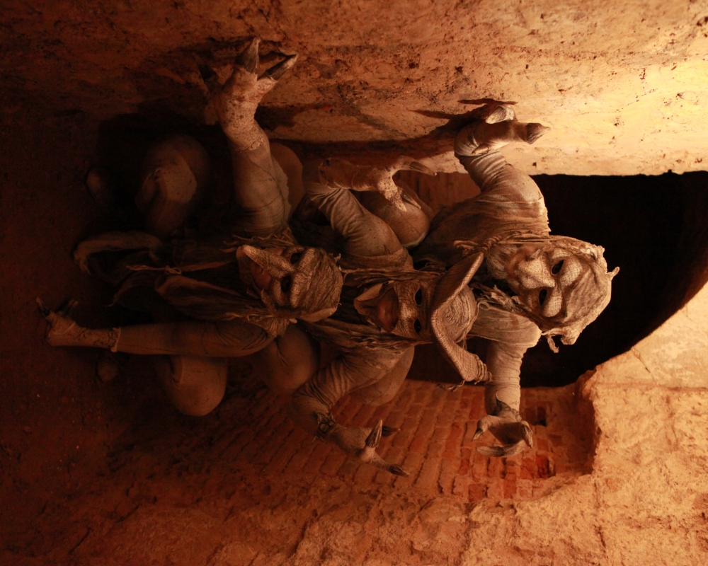 Les gargouilles créatures espiègles faites de pierre et d’argile. Venues d'un autre temps à la recherche de bien précieux comme la bave de princesse. Elles se promènent, grimpent et se figent dans les moindres recoins reprenant leurs formes de statuts protectrices.