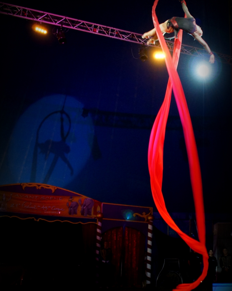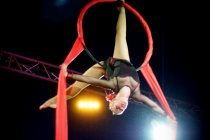 Toujours dans les airs avec son cerceau, carline vous transporte en Amérique du sud le temps d’un tango argentin. La particularité de ce numéro vient de la fusion du tissu et du cerceau qui donne une note visuelle originale.
