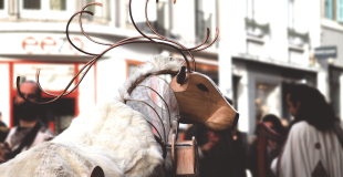 Mobile, la marionnette observe avec calme le monde qui l’entoure et interagit avec lui : elle s’approche des humains de tout âge pour les saluer ou se laisser caresser le museau. Aux arpèges de harpe répondent les mélodies de nyckelharpa. Enveloppé d’une musique live douce et lumineuse, dont une majorité de compositions originales, Awen ouvre une parenthèse hors du temps qui laisse à chacune et chacun l’occasion de s’émerveiller et de s’émouvoir.