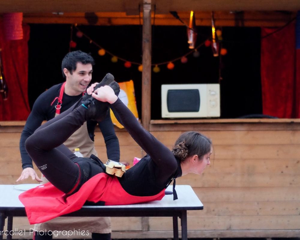Entre cours de cuisine et séduction poétique, les deux artistes vous emmener dans leurs univers burlesque entre cirque, danse et théatre.