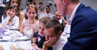 Au cours de la prestation, je rejoins un groupe d'invités, puis un autre, puis encore un autre. Qu'ils soient assis autour d'une table ou bien debout, l'ensemble de la salle profitera d'un "mini-spectacle privé" manches relevées.