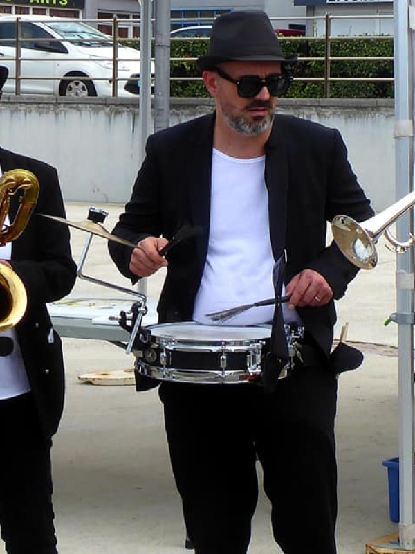 Fanfare Festive Modulable - trio - quartet - quintet ou banda en trio , quartet , quintet ....banda , cette fanfare est modulable selon vos souhaits et budget Fanfare composée essentiellement de musiciens professionnels effectif : de 3 à 8 artistes selon vos... Par Compagnie Wim Percussion