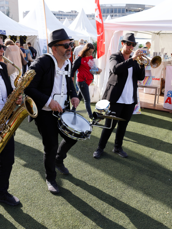 La Fanfare de l'Espace Un nouveau son venu d’ailleurs… Une rencontre mélodique entre percussions volubiles et brass band cosmique.Cuivres et percussions débridées, tubas drum’n’bass, marimba portable... Par Cie Poum tchaC