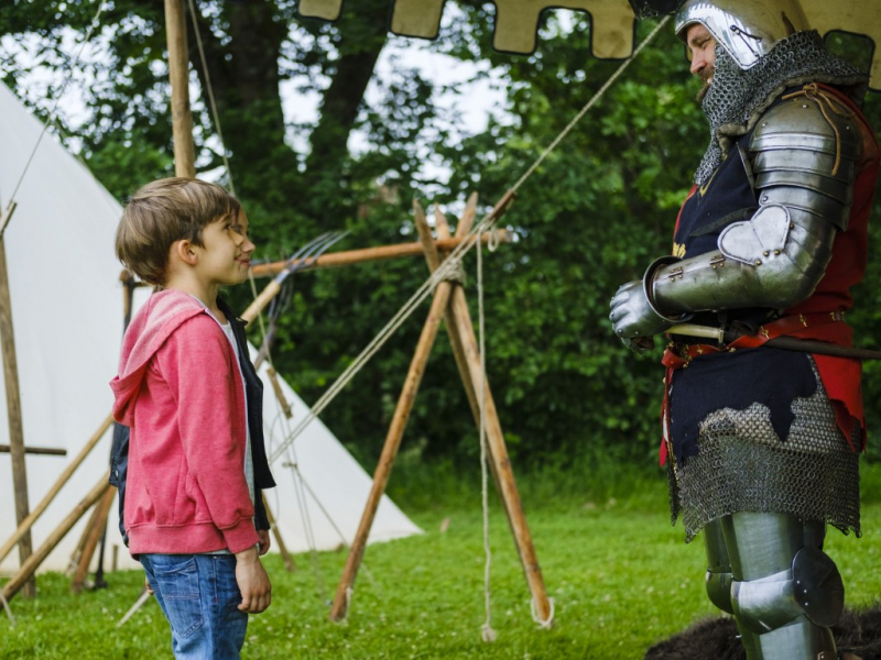 Les espaces scénarisés pour enfants : vie du chevalier, escrime, arts de la table, jeux de table, petits bâtisseurs.