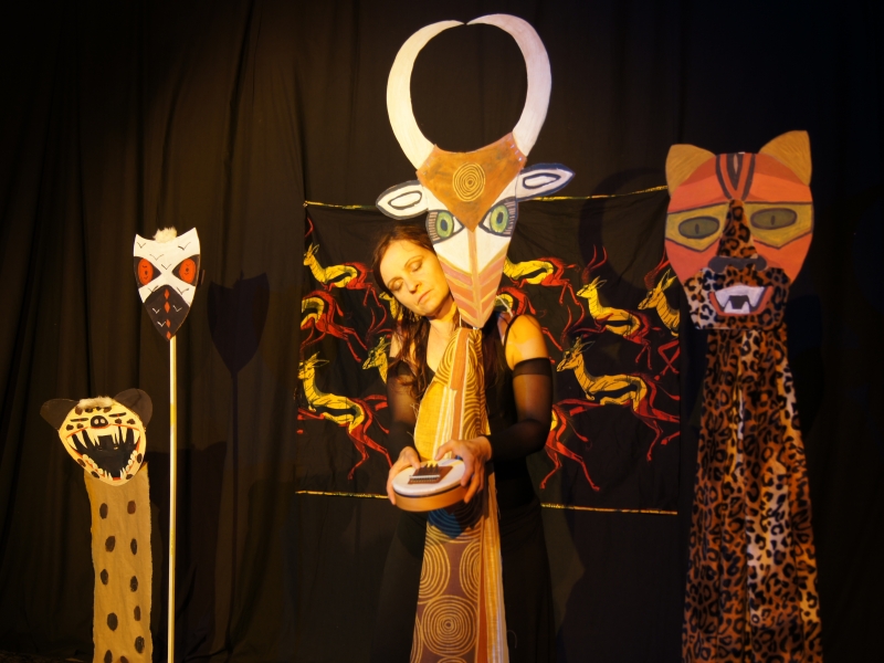 Le mouvement dansé, les rythmes du tambour, des percussions, les mélodies de la sanza accompagnent le récit à chaque métamorphose.