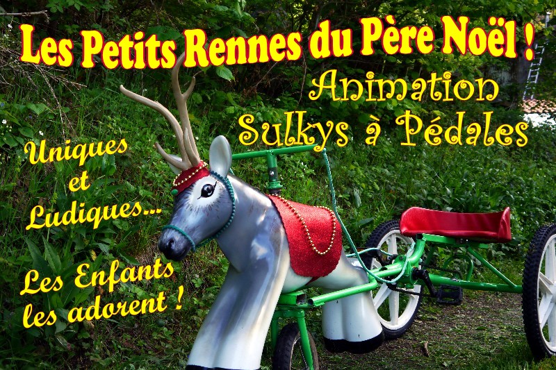 Ludiques, bucoliques, écologiques nos 6 charmants petits sulkys font la joie des enfants ! facile à piloter , ils sont accessibles aux enfants de 7 à 12 ans et peuvent s'installer partout à condition que le terrain soit à peu près plat : allées d'un parc, parking ou place ou même en intérieur (minimum 100 m²)... Ils seront parfaits dans une fête Nature, une foire ou une fête bio, la version "Noël" avec les Petits Rennes est, de son côté, idéale pour vos marchés, animations ou arbres de Noël..