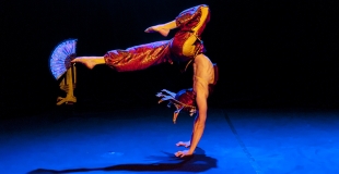 Ness un numéro original de contorsion avec des éventails et un masque vénitien
