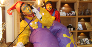 En hiver, pour animer le front de neige en station de ski , les files d'attente aux télésièges , les terrasses des restaurants d'altitude.. Rien de mieux que des déambulations en échasses à ski ! Des personnages colorés et loufoques qui mélangent tour à tour jongleries (balles, anneaux, massues ), pitreries, mais aussi glissades en tout genre ...