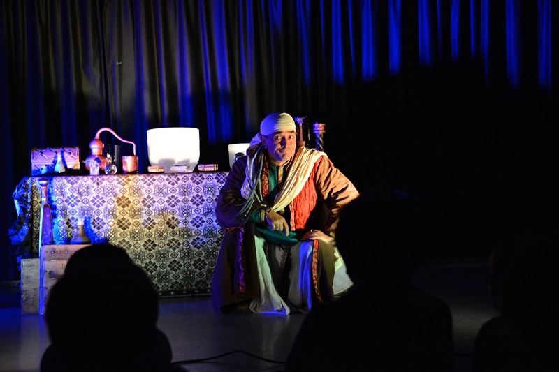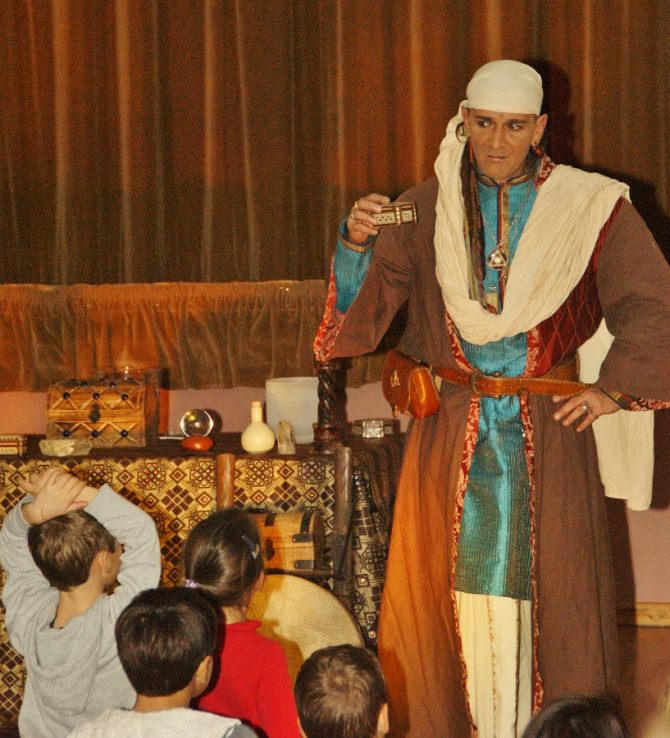 Un spectacle de contes animés, fantastique et interactif interprété par le un conteur, comédien et magicien, en costume féerique, et dans un décor magique et réaliste.