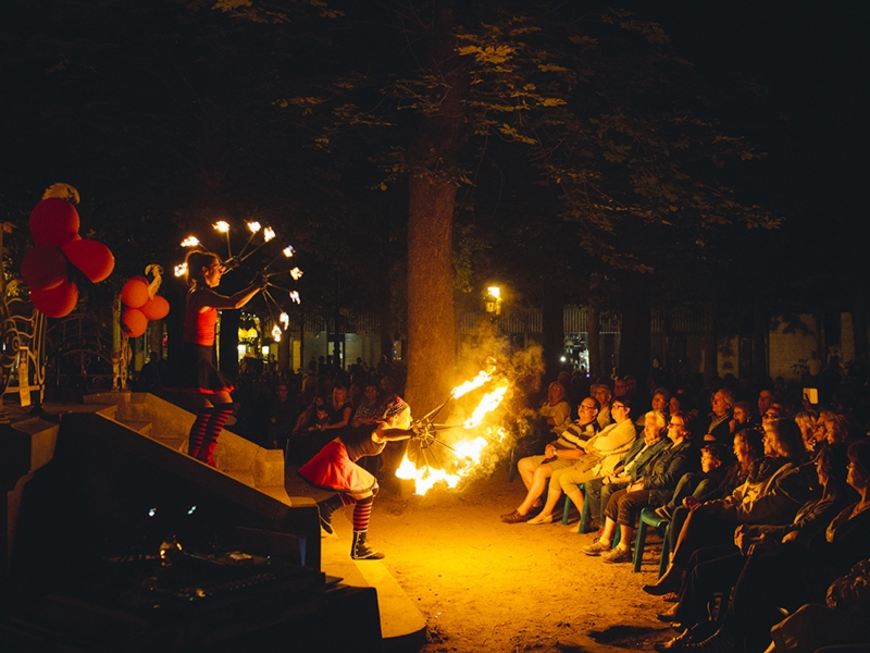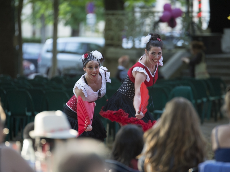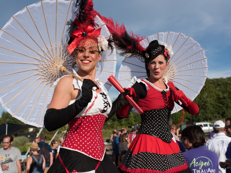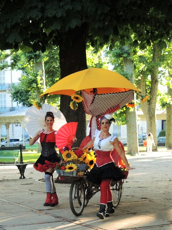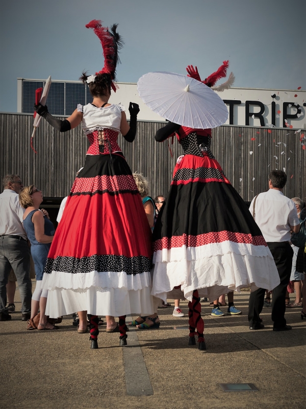 - Déambulation en échasses : Deux coquettes, follettes et gaffeuses, sèment sur leur passage sourires, clins d’œil et taquineries … Suivez-les, c’est une invitation aux plaisirs piquants…