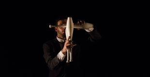 Nine To Five est un solo théâtral et dansé de jonglerie visuel, sur le thème du travail de bureau.