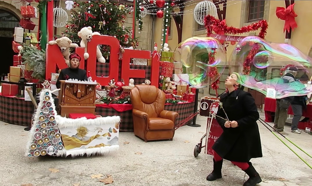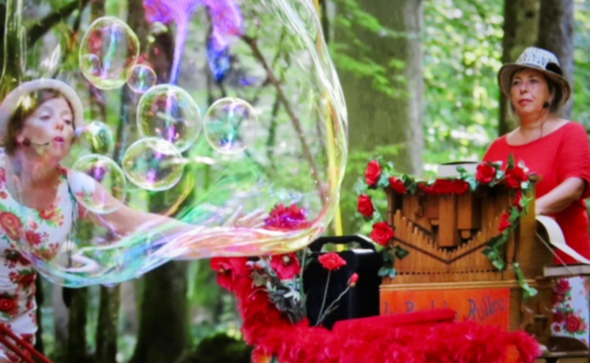 Duo de Chanteuses accompagnées de l'orgue de barbarie. Elles déambulent en soufflant des bulles de joies, des bulles d'amour, des bulles de tendresse. Les flûtes de l'orgue les accompagnent en musique pour le bonheur des petits et des grands.