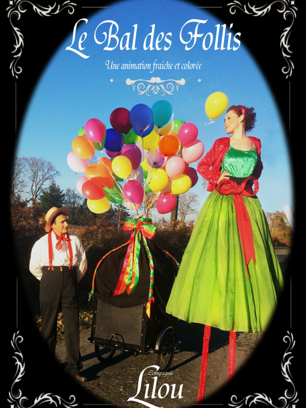 3 échassières aux couleurs joyeuses et acidulées + 1 triporteur aux mille ballons