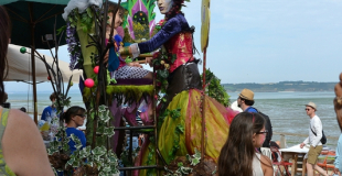 Son concept, un personnage (elfe) sur échasses et une chaise de 2m20 de haut. Le public s’y installe pour ce faire grimer.