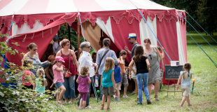- Le P’tit Chap’ de la Cie La Grenouille Bleue (petit chapiteau en toile avec capacité d’accueil de 50 personnes)