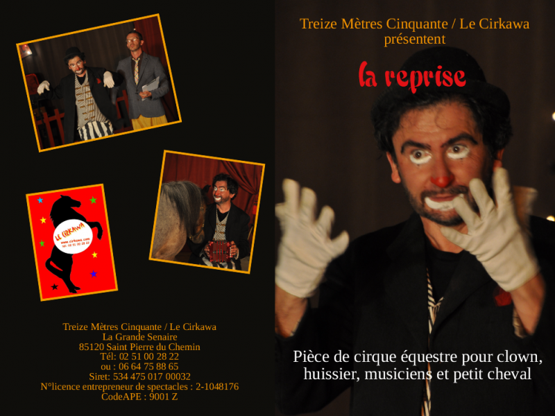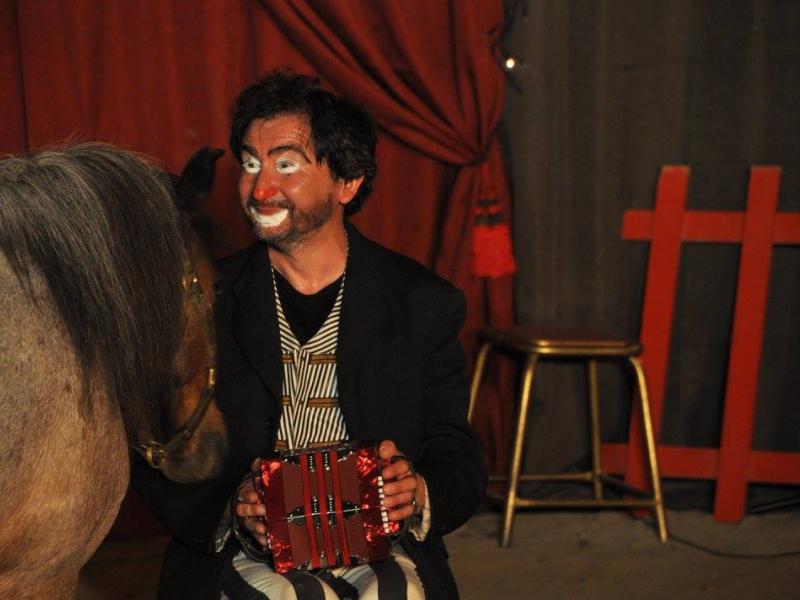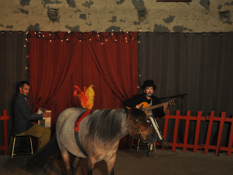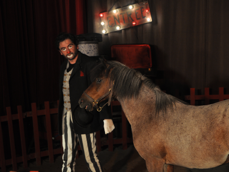 Pièce de cirque équestre pour clown, huissier, musiciens et petit cheval