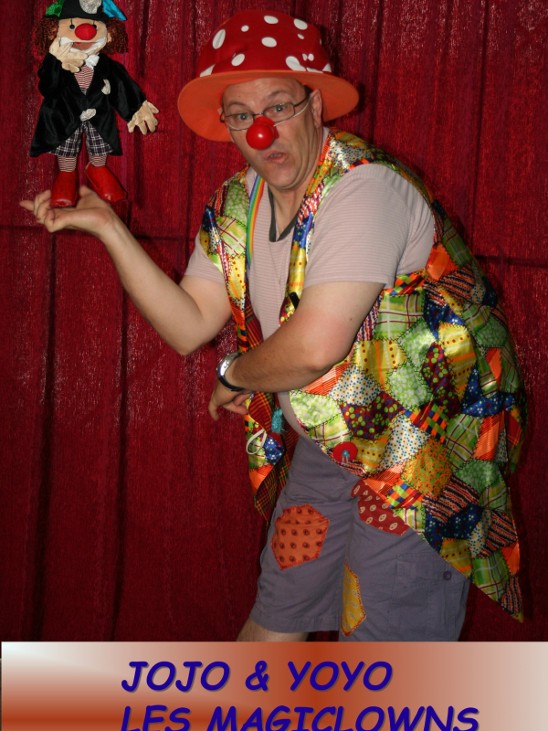 Spectacle complet composé de magie comique avec apparition d’oiseaux exotiques (2 perruches) et participation très active du public (enfants et adultes), d' un numéro de ventriloquie avec YOYO le petit clown qui réalise un grand tour de magie avec l’aide volontaire d’une jeune assistante issue du public et n° de sculptures sur ballons où un petit spectateur sera transformé en mannequin customisé ballons colorés.
