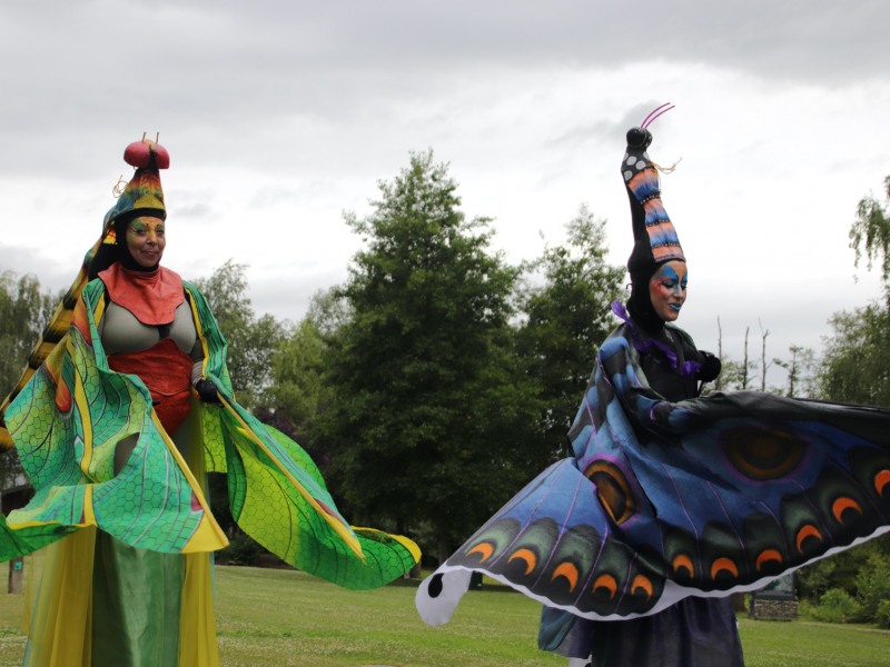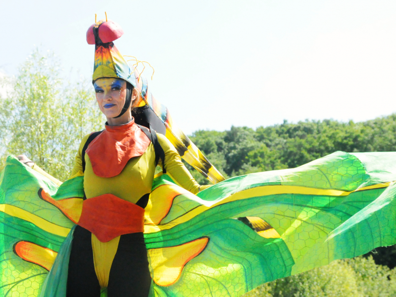 Ce spectacle déambulatoire impressionnera petits et grands par la qualité de ses costumes et par la prestance de ces insectes en échasses.