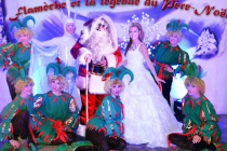 Nombreux personnages: Flamèche, Le Père-Noël, Sintille l'être de lumière, les lutins, Voleusa la voleuse de cadeaux, les patineurs, les enfants, la poupée, le lapin...