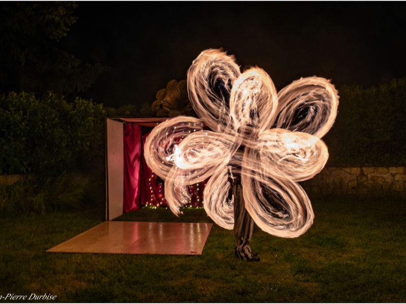 Spectacle de feu À la nuit tombée, venez découvrir notre spectacle de feu !Nous manipulons de nombreux agrès enflammés : mains de feu, bolas, bâtons, cerceau, éventails, ombrelle, ... Divers tableaux se... Par Alchimera