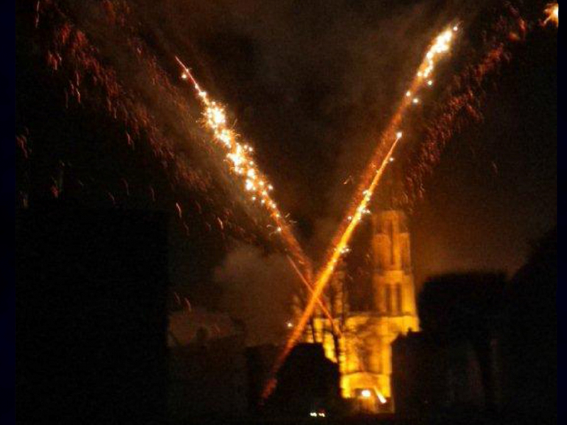 Tout le spectacle est ponctué de ballons et de pyrotechnie variée, ainsi qu’une sono mobile suivant le cortège d’échassiers et plusieurs points musicaux fixes.