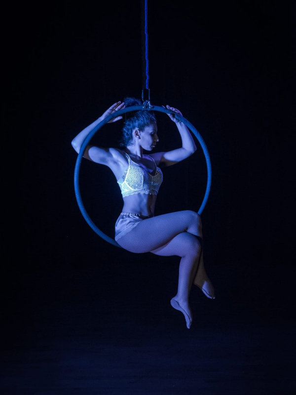 Je vous propose une danse aérienne au cerceau toute en feminité pour un moment suspendu. Délicatesse et perfomance se lies avec grâce pour cette danse toute en sensualité. Ce numéro peut être thématisé selon votre évenement afin de correspondre au mieux a vos attentes. il necessite un point d'accroche aérien et une hauteur sous plafond de 4 metres, me contacter pour de plus amples informations sur les conditions techniques requises.
