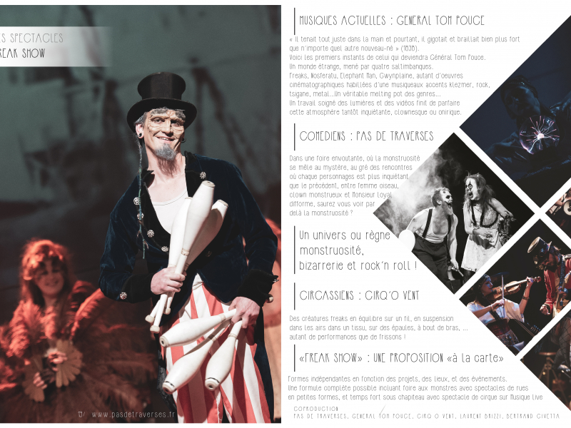 Une proposition artistique à la carte, en fonction de votre événement. Une création en co-production : Pas de Traverses, Cirq'O vent, General Tom Pouce, Laurent Brizzi, Bertrand Civetta