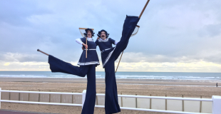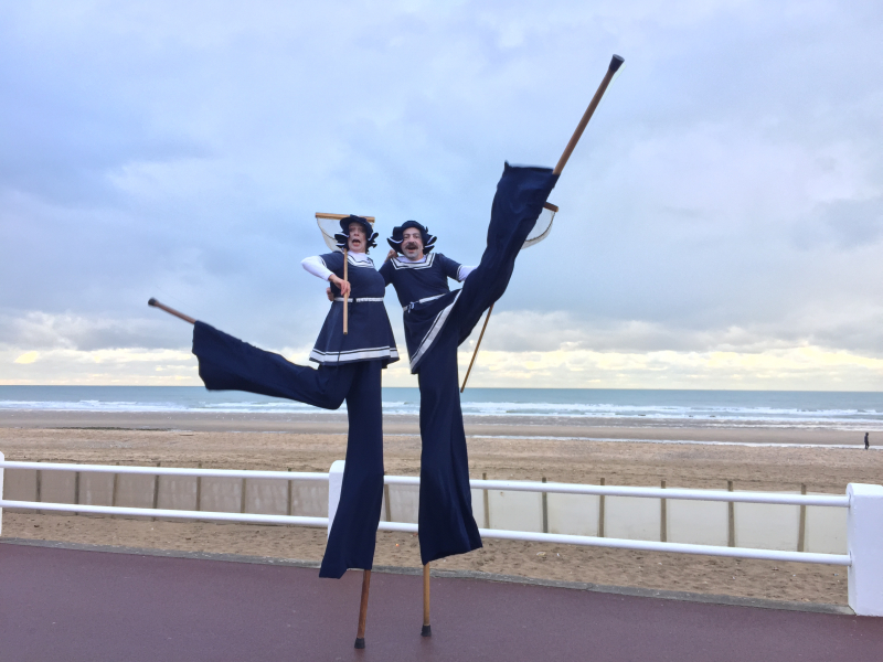 Tout droits sortis de la Belle Epoque, nos comédiens en costume de bain, en échasses ou en déambulation au sol, vont à la rencontre de votre public de manière poético-burlesque.