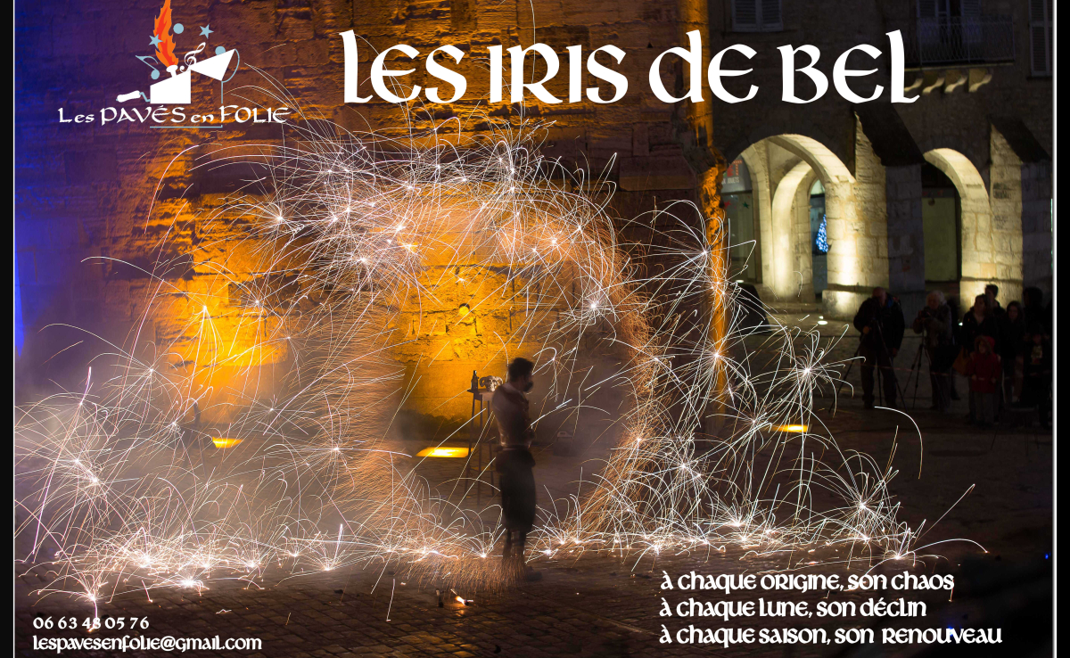 Les Iris de Bel est un spectacle de feu pyrotechnique, inspiré par un poème et une légende galloise.