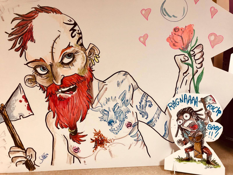Elle est aussi accompagnée d'un illustrateur viking qui dessine en direct ses légendes sous les yeux du public, conquis.