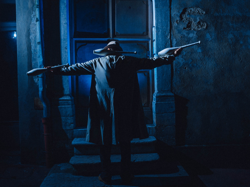 Ce spectacle est un format adaptable allant de 5mn a 30 mn autour de la recherche de l'objet massue. Utilisant toutes sorte de massues avec des longueur et des poids differents.